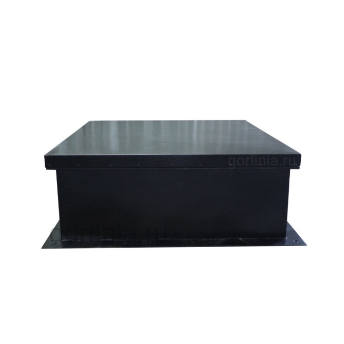 Внешний периметр отделан гладким стальным листом 2мм. В каркас полотна и коробки между ребрами жесткости вшит минеральный утеплитель 100 мм.