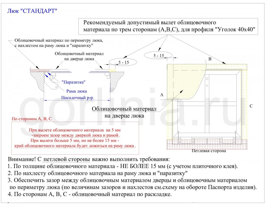 Отметим точный подбор амортизаторов для плавного хода напольной двери на петлях. Угол открытой дверцы составляет менее 90º, так нагрузка остается в центре масс, а пневмоподъемники функционируют вне зоны разрыва.