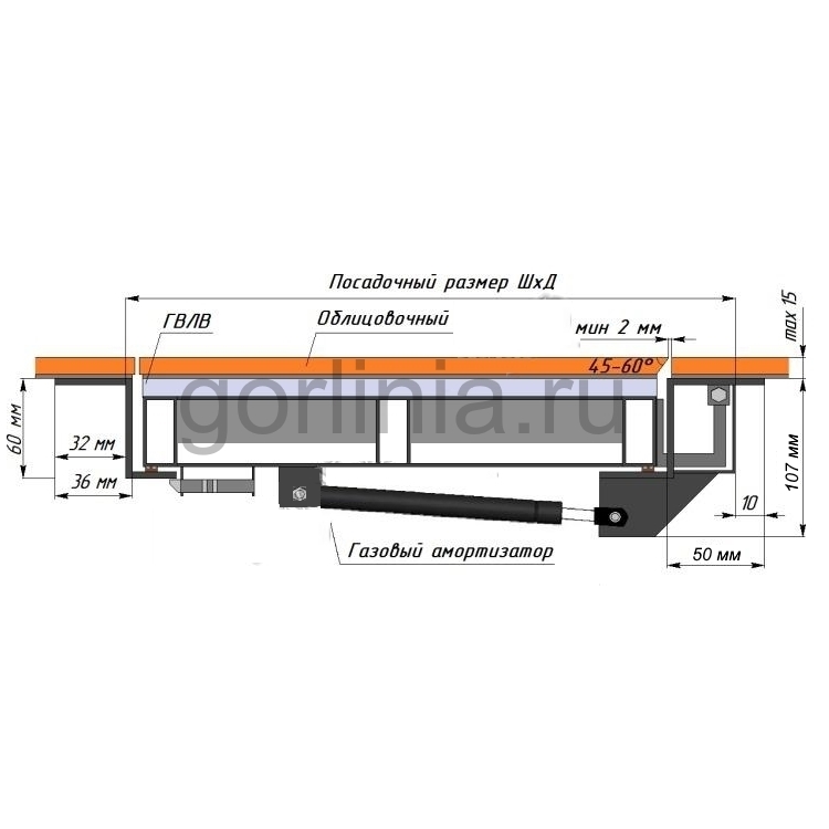 Конструкция смещенного за ось узла шарнира позволяет заводу-изготовителю сформировать опорную поверхность по стороне петли, сохранив при этом ширину лаза 700 для комфортного прохода.