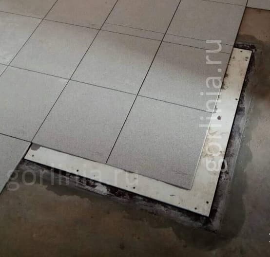 Облегченная модель без щелей в полу со уведенными за ось открывания петлями. Легкая ходовая часть и удобная установка. При формировании конфигурации напольного отверстия обратите внимание, что защитные кожухи шарниров выходят за посадочную отметку по плечевой стороне.