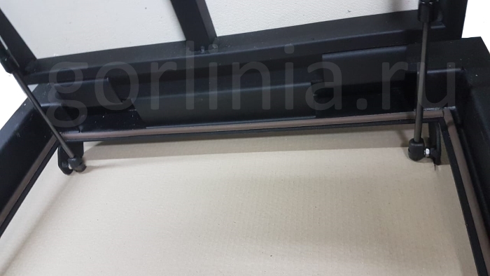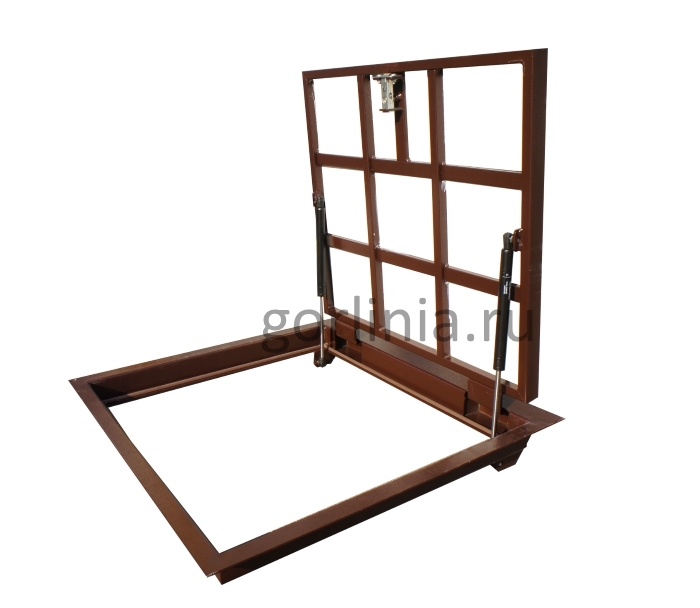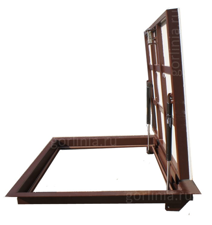 Облегченная модель в заказном размере без щелей в полу с уведенными за ось открывания петлями по длине 700. Легкая ходовая часть и удобная установка. При формировании конфигурации напольного отверстия обратите внимание, что защитные кожухи шарниров выходят за посадочную отметку по плечевой стороне 600.